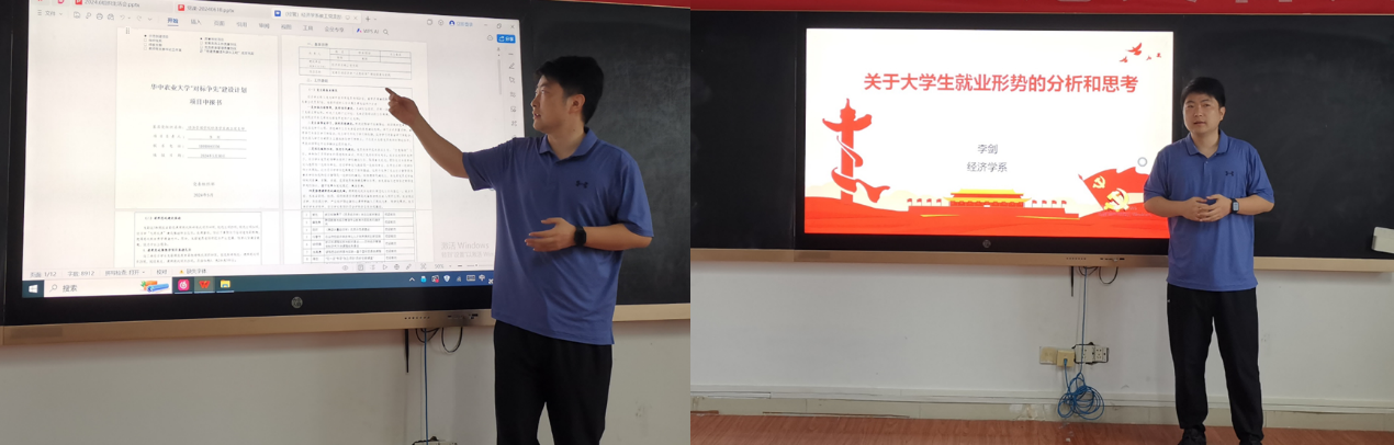 为了更好的回答员工们在就业规划方面的问题,支部书记李剑讲了题为“关于老员工就业形势分析和思考”的专题党课。首先指出当前就业现状表现为规模更庞大、学科特征更明显、员工升学意愿更强烈、缓就业现象更突出、农林高校毕业生前景更广阔等特点,既有挑战又有机遇,鼓励员工们要有信心的面对就业问题。其次,分析了部分老员工就业难的九大原因,包括经济环境不够稳定、就业市场供求不够平衡、就业观念与社会期望不够一致、就业目标不够明确、职业规划不够清晰、人才质量不够适应市场需求、主动出击对外拓展不够有力、生涯教育与就业服务不够适应新形式等。其中在就业观念上,指出员工吃苦耐劳精神有待加强、劳动观有待提高、择业观有待拓展,且要杜绝躺平观念。在讲到人才质量和市场需求适配问题时,特别指出用人单位认可的排前三位的人才素质为责任心、抗压能力和人际沟通能力,而员工自评分数较低且靠后的素质有创新能力、抗压能力、沟通表达能力,以及组织与管理能力。两者的重合为员工明确能力提升目标,做好就业规划指明了方向。最后,提出优化老员工就业的五点对策,建议老师在日常教学工作中应积极引导员工树立正确的择业观和就业观。特别是结合经济学系教工党支部“对标争先”建设计划,在“大思政课”建设过程中,将职业生涯规划与就业指导融入课程思政教学,强化人才培养的就业导向,提升人才培养质量。
