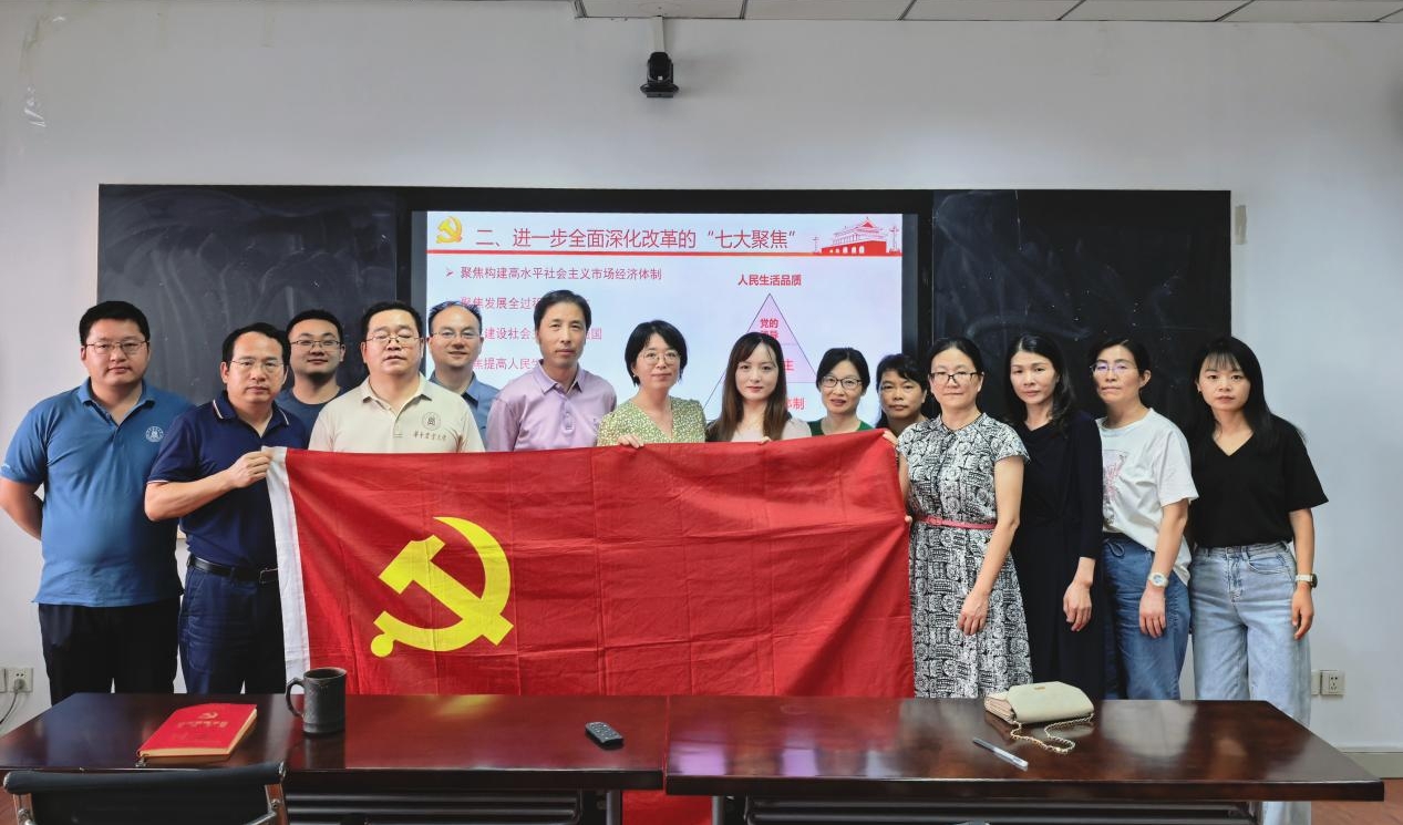张爱武老师带领大家学习党的二十届三中全会精神。张爱武老师围绕进一步全面深化改革的一个总目标与两大总任务、“七大聚焦”、贯彻“六大原则”、十四大系统部署、“一个特别强调”等五个方面领学党的二十届三中全会精神,重点从市场经济体制、保障改善民生、中国式现代化等三个层面深刻解读了进一步全面深化改革的十四大系统部署。张爱武老师接着分享学习习近平总书记在全国教育大会上的重要讲话精神。张爱武老师表示,我们要牢记立德树人根本任务,着眼于培养德智体美劳全面发展的社会主义建设者和接班人。