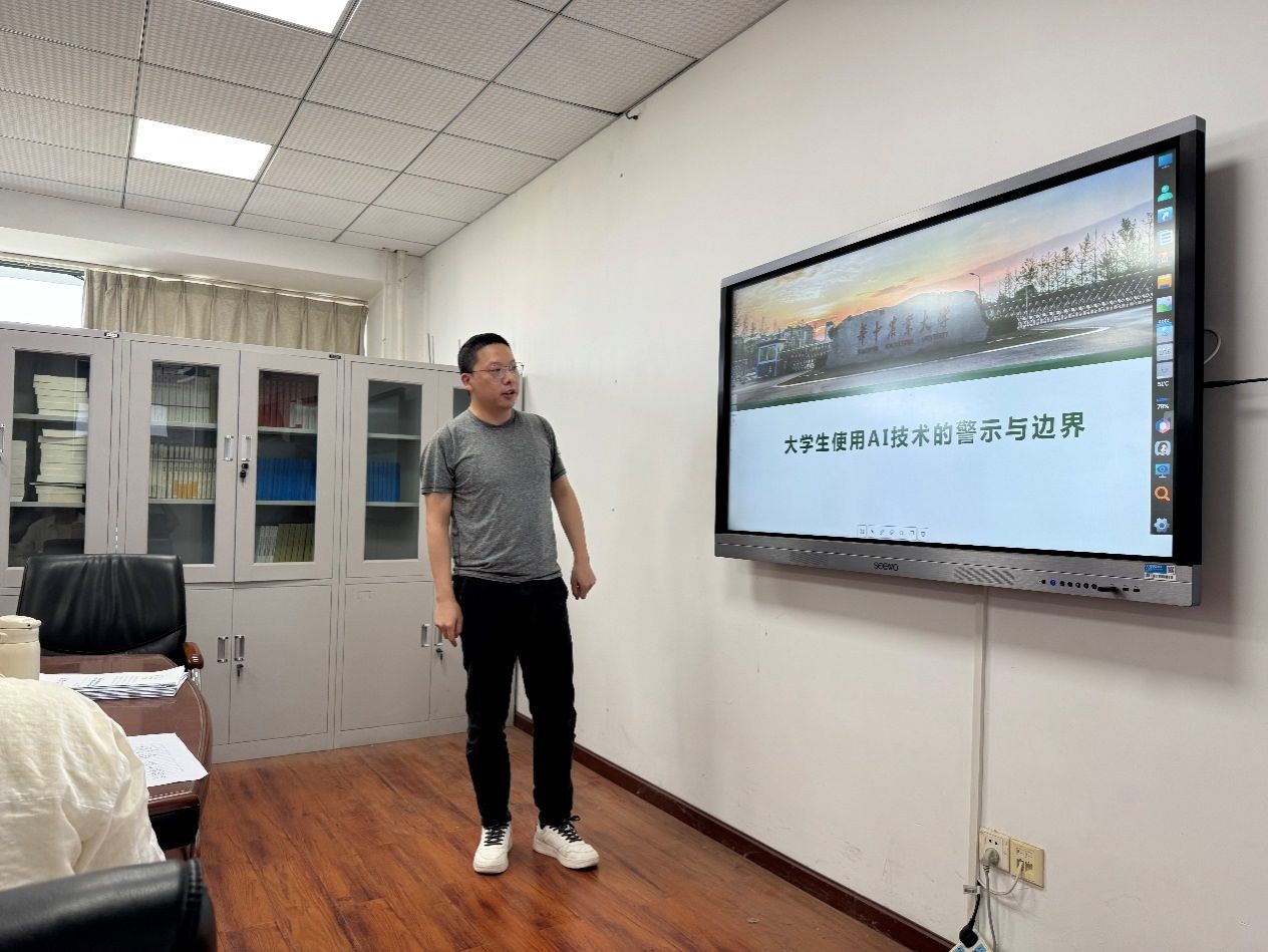 支部党员聂飞同志领学了习近平总书记关于弘扬教育家精神的重要指示精神。结合当前高等教育面临的新挑战,活动重点围绕“老员工使用AI技术的警示与边界”这一前沿议题展开专题研讨。研讨聚焦AI使用的典型风险分析和使用范围的界定原则,明确教师的引导监督责任。