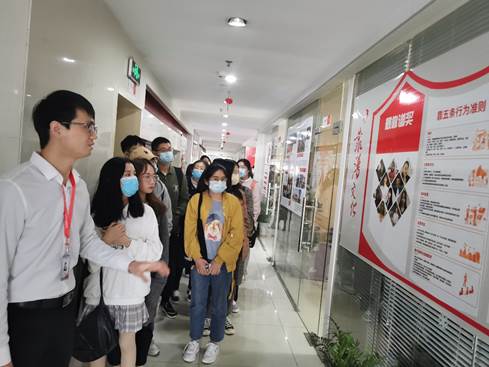 一览网络股份有限公司成立于2006年,从专业细分招聘网站模式起航,深耕专业技术人才全球范围内的配置与在线学习服务,武汉分公司位于光谷金融港。抵达公司后,公司师生在一览负责人的带领下参观了公司的整体办公环境,了解了一览网络的发展历程、涵盖人力资源全产业链的“一览七剑下天山”产品以及企业的使命、愿景和价值观。通过对猎头RPD产品在线交付人员成长通道的介绍,同学们加深了对高端人才招聘的了解,公司极具特色的“靠谱文化”也给大家强烈触动,“守时、凡事有交代、及时反馈、言而有信、勇于批评与自我批评”这五条行为准则为同学们未来顺利融入职场提供了启示。