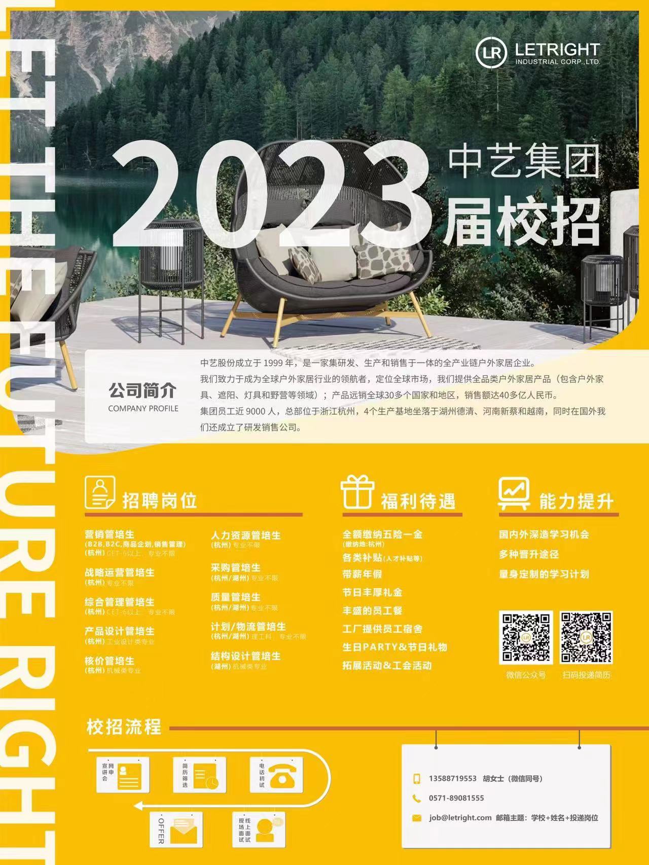 l 中国户外家具行业出口排名前2,年销售额46亿,国内及海外布局,公司实力雄厚,管理规范,有良好的薪酬福利待遇,本科12-15万,研究生16-20万;