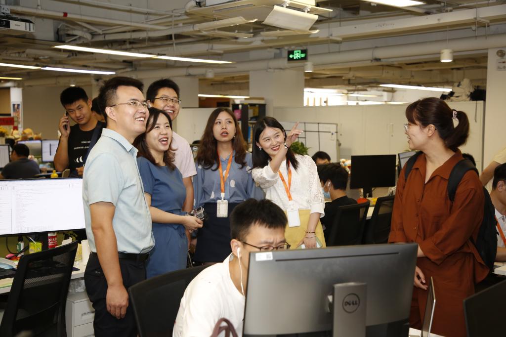 28日,走访团一下火车便直奔上海字节跳动总部。作为中国互联网公司中年轻而亮眼的黑马,字节跳动吸纳了一批华农学子在此工作,经管院2014级优秀员工罗权便是其中之一。他热情地接待了老师们,并带大家参观了总部大楼。智能化的迎宾服务、简约时尚的办公环境、人性化的就餐休闲区、数字化的多媒体会议室、弹性化的工作安排等无不体现出公司的科技感和青春活力。罗权介绍,公司2012年成立,是最早将人工智能应用于移动互联网场景的科技企业之一,旗下资讯、视频等产品已经覆盖75个语种、布局150个国家。他表示,目前公司处于快速发展期,虽然近期的国际环境变化对公司造成了一定影响,但公司依然求贤若渴,行业领先的短视频平台也将为在校老员工提供更灵活的就业机会。他非常乐意为学弟学妹们提供更多内推就业机会。