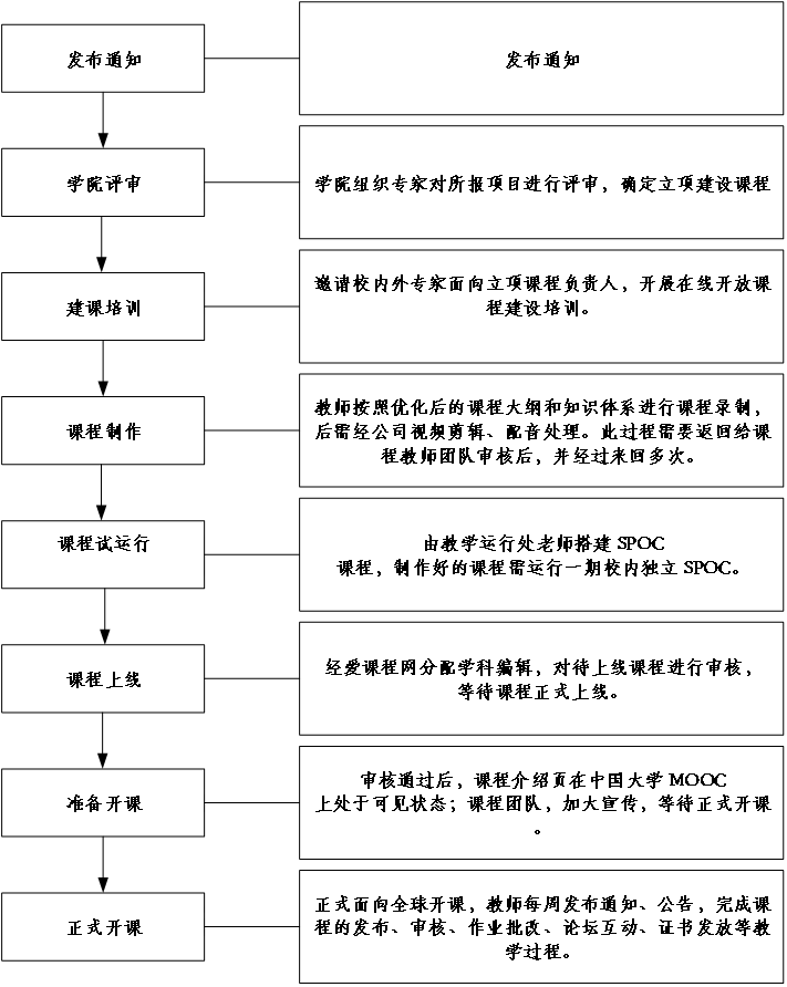 )阶段性重点课程(如全英文课程、核心通识课等)建设流程图